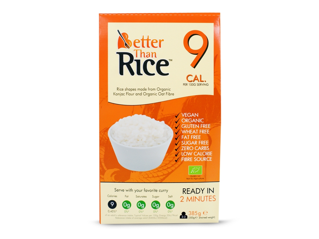 Bezglutenowy makaron w kształcie ryżu do spożywania na zimno lub gorąco. Przygotowany z ekologicznej mąki konjac z dodatkiem ekologicznego błonnika owsianego. Glukomannan konjak to rozpuszczalny w wodzie błonnik pochodzący z korzenia rośliny o tej samej nazwie. Bulwa rośliny konjac jest bardzo bogatym źródłem witamin, minerałów i błonnika. Najcenniejszą właściwością rośliny konjac jest wysoka zawartość błonnika. Konjac oprócz zawartości witamin, zawiera również mikroelementy takie jak żelazo, potas i wapń. Konjac jest znany i spożywany w Azji już od bardzo dawna.Makaron ma tylko 9 kcal i jest źródłem błonnika pokarmowego odpowiedzialnego za prawidłowe funkcjonowanie układu pokarmowego. Jest również odpowiedzialny za uczucie sytości pomimo niskiej kaloryczności.Jedno opakowanie to porcja dla 2-3 osób.